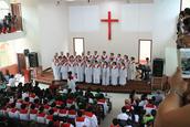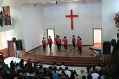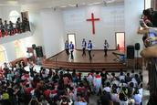 接下来,温州藤桥牧区、城南教会,定南教会、东村教会、云上教会等各教会献上精心准备的节目,快板、舞蹈、表演唱等各样节目精彩纷呈,最后聚会在主持人的祷告下落下帷幕。