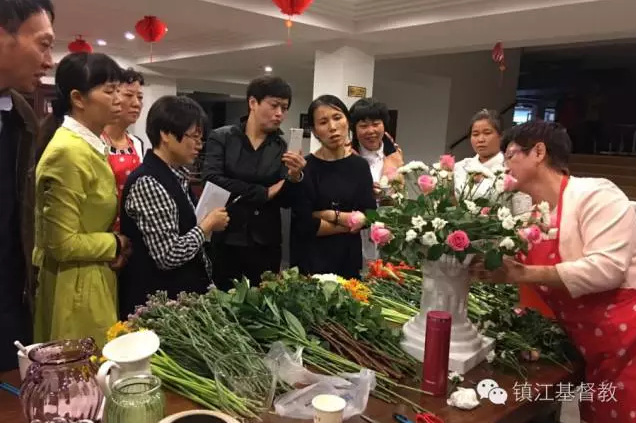10月10日,来自香港、为华人教会第一代教会插花艺术专家的陈少爱牧师于镇江宣德堂讲授了教会如何在不同的节期中,摆放插花的艺术技巧。陈牧师亲自教导同工们如何插花、选花,如何选定花材的高低、尺度、角度、搭配、色彩等知识。