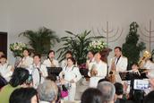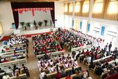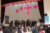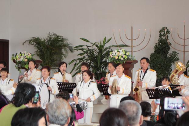 贺堂典礼的当日,晴空万里,艳阳高照;位于海南区的新教堂的红色十字,高高耸立,圣乐队列队奏乐,颂赞主的恩典。教堂内外一派节日的气象。本次庆祝活动,有来自内蒙古的临河,陕坝等地和乌海本地的兄弟教区以及陕西榆林,宁夏惠农区、贺兰县、银川等地十余个教会的牧师、长老、同工、弟兄姊妹以及慕道友1000多人参加了本次活动。