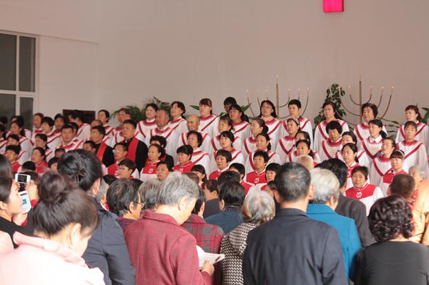 到场的十余位牧师长老,带领全体到场的众信徒,为新圣殿的落成,献上歌颂赞美,感谢我主的恩典,赞美神的大能,祈求有形的圣殿与无形的内心的圣殿得到神的祝福,得以共同的建造,愿众弟兄姊妹,共同遵行圣灵的带领,见证主的恩典,同心合一,荣耀主的圣名。