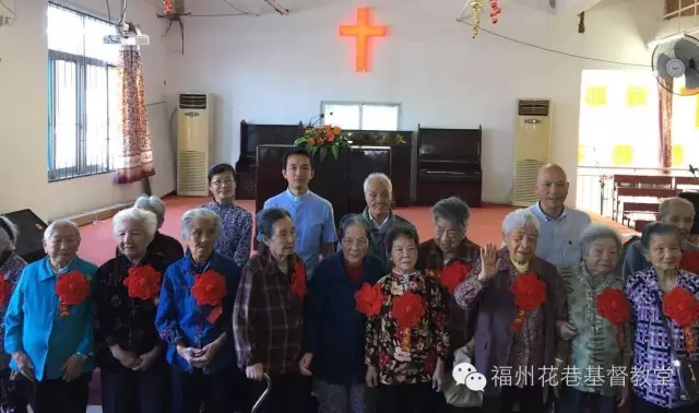 2016年10月14日,福州市花巷基督教堂常青团契在临时过渡场所举办第18个老人节感恩崇拜,出席人数近2000人,90岁以上长者共90位,其中100周岁以上的有7位。