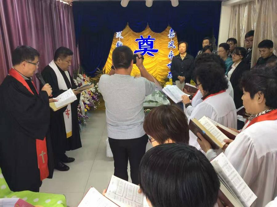 10月8日,天津市基督教两会为刘召英老姊妹举行了追思会。天津市基督教两会以及山西路堂献上花圈。追思会上,诗班唱诗。毛雅君牧师带领教牧同工查经祷告,缅怀安息主怀的神仆。