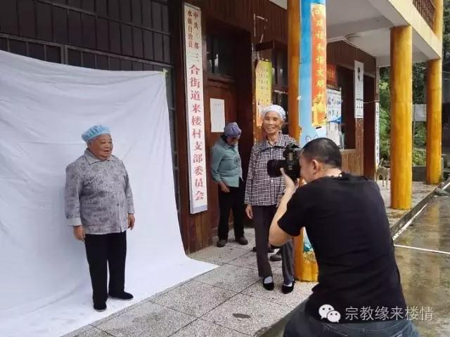 据宗教缘来楼情公众号介绍,4月,爱德基金会赴来楼考察调研;7月,摄影师孙健老师一行赴来楼村完成拍摄任务,经过孙老师的细心处理,66幅照片均以版画形式制作完成;8月上旬,将此66幅照片寄达三都县;9月9日,拉揽村第一书记与村组干部一道赴来楼将照片送到了每位在家老人的手中,没在家的则委托组长转交。每位收到照片的老人都喜笑颜开,说照的太好看了,纷纷表达对爱德基金会的感谢之情。一位老奶奶说,照得好是好,就是笑的过了点。