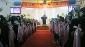 据北海教会一位同工介绍,当晚,在婚礼进行曲中,所有夫妻登场。随后贾可长老以“幸福婚姻”为主题进行分享。贾长老表示,婚姻的关系是“二人一体”,创世记2章18-25节有相关经文。