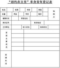 报名表中包含学历、身份证号、工作单位、收入状况、信仰状况、家庭主要成员、择偶标准等内容。