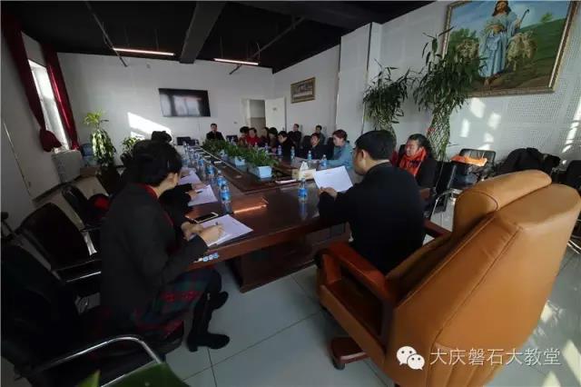 2016年11月19日,大庆市基督教两会工作总结会议在大庆市磐石大教堂三楼会议室举行。会议讨论教职人员养老保险和工资待遇、杜尔伯特县扶贫救灾、12月大庆教会同工诗班献祭组合演出、圣经培训中心等议题。