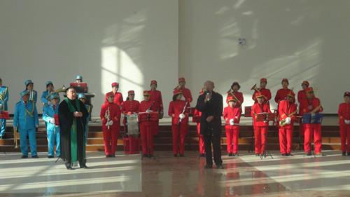 11月16日上午,包头市东河区基督教两会为铁西基督教堂建成举办竣工庆功会,包头市东河区基督教两会会长王孝真牧师主持庆功会。