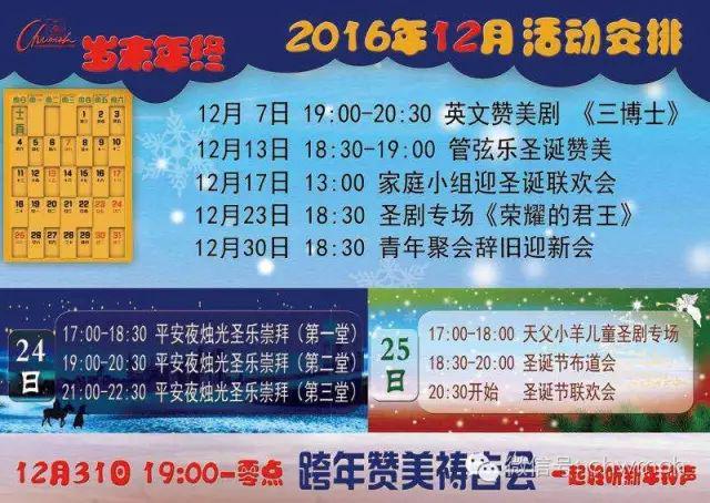崇文门堂其他活动还有12月7日的英文赞美剧《三博士》,12月13日举办管弦圣诞赞美会,12月17日举行家庭小组迎圣诞联欢会,以及12月23日的圣剧专场《荣耀的君王》。