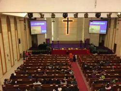 2016年3月28日,铜梁区大庙镇神光堂献堂典礼,许伦胜、曹仁芳、李大军牧师参加典礼。