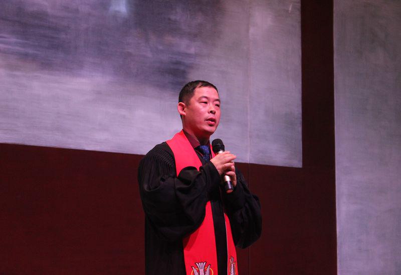 圣诞节目将近尾声,光音堂主任牧师赵刚为主证道。他引用《提摩太前书》1章15节的经文分享,“‘基督耶稣降世,为要拯救罪人。’这话是可信的,是十分可佩服的。在罪人中我是个罪魁。然而,我蒙了怜悯,是因耶稣基督要在我这罪魁身上显明他一切的忍耐,给后来信他得永生的人作榜样。”