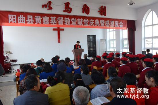 据太原市基督教会网站的消息,黄寨聚会点的献堂庆典由太原市基督教两会副会长兼总干事王晨星牧师主持,市基督教两会主席、会长张恩来牧师证道,500余人参加了庆典。