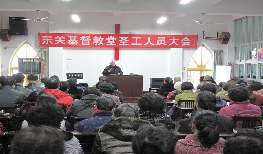 2017年1月12日上午,福建邵武市东关基督教堂在三楼小礼堂召开圣工人员大会,有286人参加。