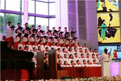随后,广州市基督教联合诗班及韩国生命之路合唱团献诗赞美上帝,最后由冯浩牧师向会众祝福。