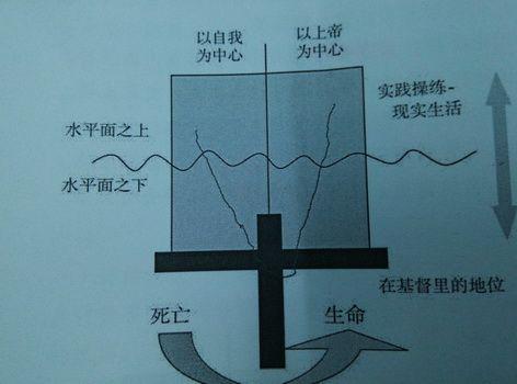 本次分享的内容是将一个人的生命状态分为四个象限,水平线上下和以自我为中心还是以上帝为中心。水平线下是破碎、痛苦的生命,上面是健康的状态;自我中心是死亡的状态,以上帝为中心则是生命。从死亡到生命需要耶稣十字架的救赎。
