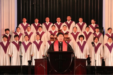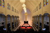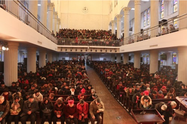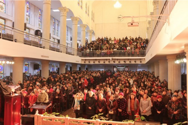 2017年1月29日农历正月初一,天气虽然寒冷,但未能阻挡弟兄姊妹从四面八方参加在伯特利堂、天中堂和洪恩堂举行新年祝福礼,天中堂前的大屏幕播放着由白建德牧师题写的新春祝福:“恭祝鳮年更平安,贺岁一年又一年,新的生命更康健,春驻贵体灵丰满!”向每一位走进天中堂的弟兄姊妹送上属天的祝福。