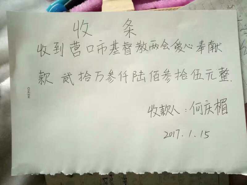 辽宁省营口市年近30岁的何庆楣姊妹幼年丧父,母亲在2014年也去世了,在家务农的她于2016年6月因股骨头坏死需手术治疗,营口市基督教会为她筹集了20多万元的奉献。
