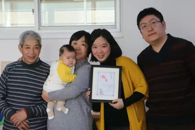奉献礼上,父母抱着张恩绮,吕东牧师为其按手祷告,现场还有诗班献唱。奉献礼后,教会发给小婴儿一个印着红脚印的证书。