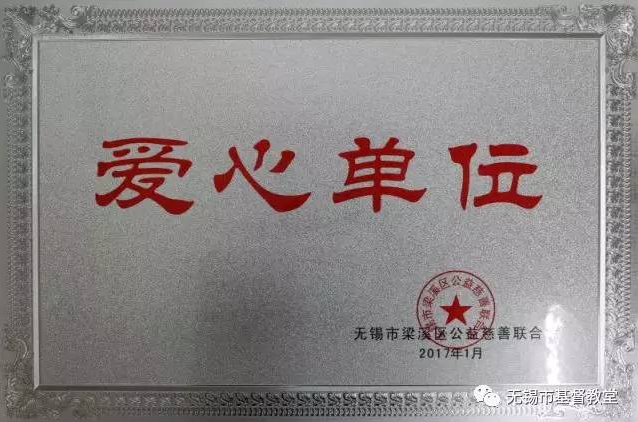 2月20日,无锡市梁溪区慈善联合会向无锡市基督教堂颁发了“爱心单位”奖牌,以表彰该堂在公益慈善事业上的付出和努力。