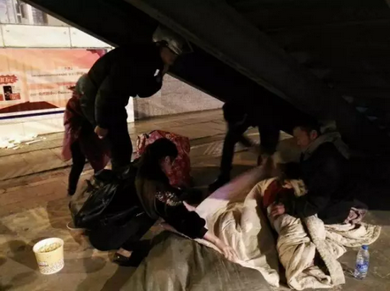 我们继续沿路寻找,又遇见不少流浪者,我们按着他们的实际需要一一送上棉被或衣物以及食物。其中最让我感动的是一位老人,他接过棉被和馒头后,充满感激地对我们说:“今晚好温暖。”这一句话让我的眼睛湿润了。在这寒冷的夜里,愿他真的得到温暖,也希望他能早日回自己的家。