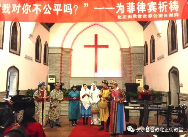 3月3日晚,长沙基督教北正街堂举办了主题为“我对你不公平吗?”的世界公祷日崇拜,为菲律宾、为全球妇女儿童、为世界和平与公义、为中国献上祈祷。