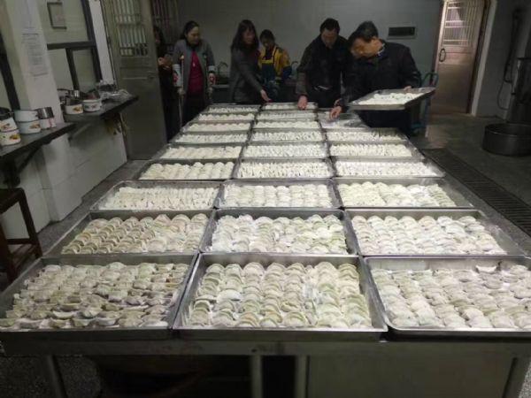 长沙市基督教两会网站分享了活动的部分情况。几位弟兄姐妹带着口罩,在厨房里边包水饺边开心的说笑,桌子上摆着的近30个大托盘的饺子很是壮观。