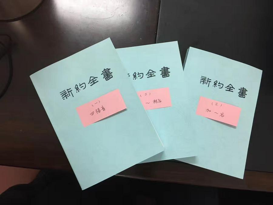 来自天津市各个教会的1189名基督徒参与了手抄圣经活动,目前《新约》已经抄写完并且装订成册。