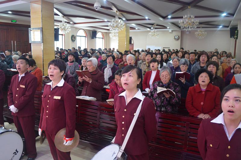 16日的清晨雨在静静地下着,然而乐队弟兄姊妹们在风雨中奏出了《基督复生歌》,今朝基督正复生,凯旋圣日众欢欣,基督一回十架定,受死原为救万民。