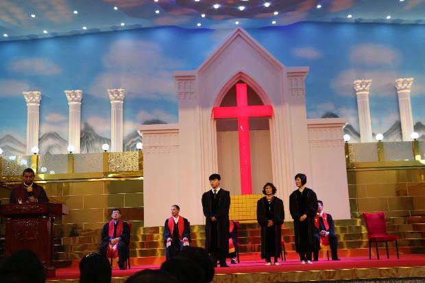 上午的庆典在按牧礼中推向高潮,在朱致国牧师主礼下有三位同工分别按立牧师和教师圣职。神的家又多了三位基督的精兵,求上帝大大使用他(她)们,成为湖北教会的祝福。