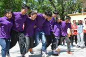 本次比赛活动分个人项目、集体项目和团体项目,个人项目有踢毽子、定点投篮、羽毛球落点、立定跳远、和保龄球。集体项目有袋鼠运瓜、绑腿跑和3VS3篮球决赛。团体项目是拔河,活动运动场上,热闹非凡,大家你追我赶,一片欢声笑语;场面和谐,团结向上。