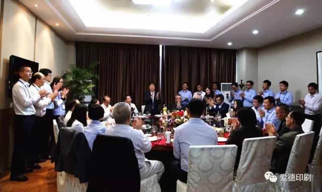 会后公司特别为郦纯农副总经理举行了荣休欢送晚宴。丘董事长代表董事会对郦副总30多年来为爱德事业所作出的贡献表示衷心感谢,并赠送专门制作的纪念影集。柯伟生董事代表联合圣经公会感谢郦副总为圣经印刷事工所做的工作,并祝愿他享受美好健康的退休生活。公司全体中高层领导参加欢送晚宴。