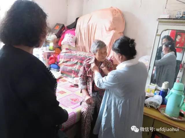 最后一家是庄口徐屯的张秀梅姊妹,张姊妹81岁,信主10多年,现在岁数大了,眼神不好,不能去聚会了。她儿子媳妇离婚,现在娘俩相依为命,儿子还时常不在家。杨晓红姊妹给老姊妹买了蛋糕一起送去,老姊妹感动的老泪纵横,她说,没有人爱她,只有主爱她,要靠着主坚定地走永生的道路。