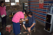 队员们一到老人们的家中就热情的拉起了家常,通过聊天对老人们的基本生活状况进行了解,队员们还为老人送去了食用油和点心,队员何美荣姊妹为老人们进行了血压体检并认真的为老人们做了详细的记录,根据体检结果给出了专业的日常护理建议,并约定下次给老人们带去药物。