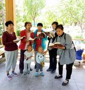 服侍组的姊妹们一起歌唱赞美上帝,赞美祂的大能,祂的奇妙,连她们的小孙子也禁不住一起参与!大家还一起分享着各自从家中带来的食物,每个人的脸上都洋溢着欢乐的笑容。