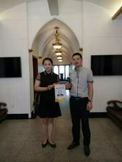 杭州市基督教两会会长张耀法牧师代表杭州教会热烈欢迎他们的到来,城北堂主任牧师黄明科向对方介绍了城北堂的历史、教牧同工和聚会情况,并带领全体师生参观了城北堂。黑龙江神学院师生对城北堂的安排和介绍表示衷心的感谢,特意献唱一曲赞美诗《主赐给我的所有恩典》,又赠送了学院中聋哑学生制作的礼品。