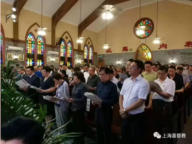 2017年6月25日下午2时,静安区闸北堂内,座无虚席,来自基督教全国两会,上海市基督教两会和各区基督教两会的同工和信徒及上海市委统战部,市政协,市民族和宗教事务委员会的干部 300余人,怀着崇敬、悲痛的心情聚集在这里,一起追思原中国基督教三自爱国运动委员会副主席、上海市基督教三自爱国运动委员会主席沈德溶先生。