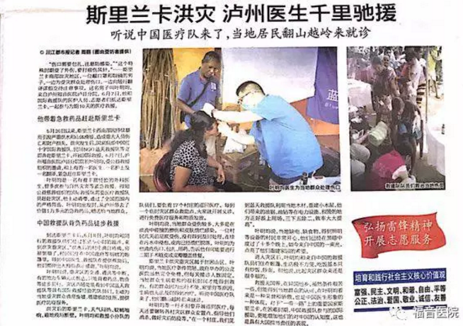 救援工作结束后,泸州晚报(川江都市报)还以《斯里兰卡洪灾 泸州医生千里驰援》为题进行了报道。