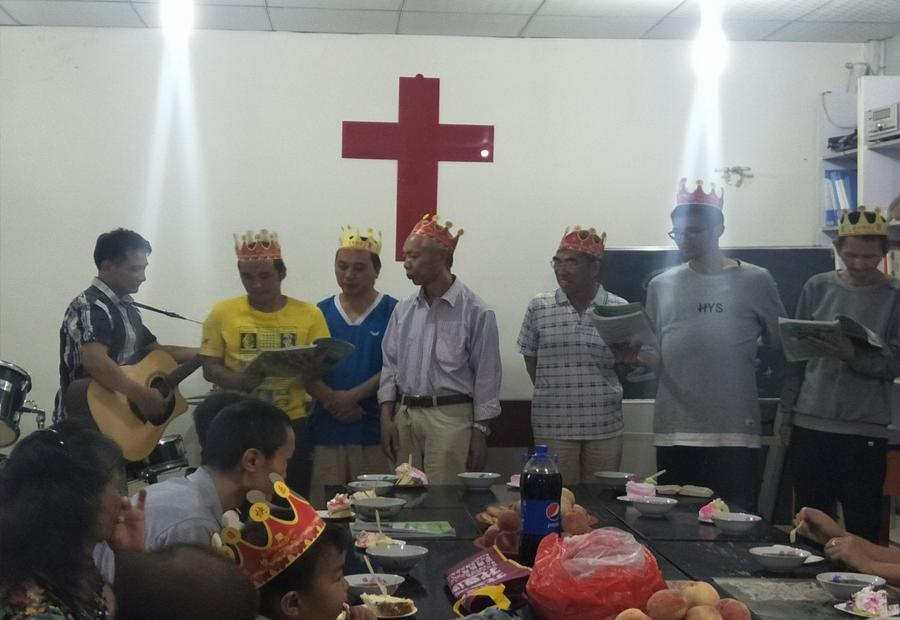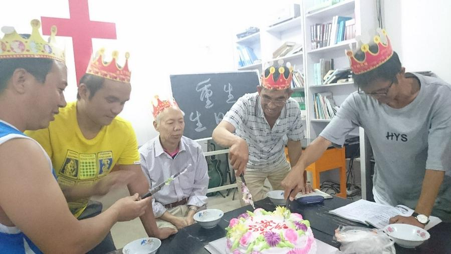 第三,集体生日会:晚上7:30,在赞美的歌声与虔诚的祷告中,生日会正式拉开序幕。几位“寿星”头戴生日帽,在大家献上“生日歌”时闭目许愿,一个愿望留在心中,另一个则与大家分享。寿星们有对彼此身体的祝愿,也有对重生园迁址的祝福,更有对神能保守大家的心的期盼。