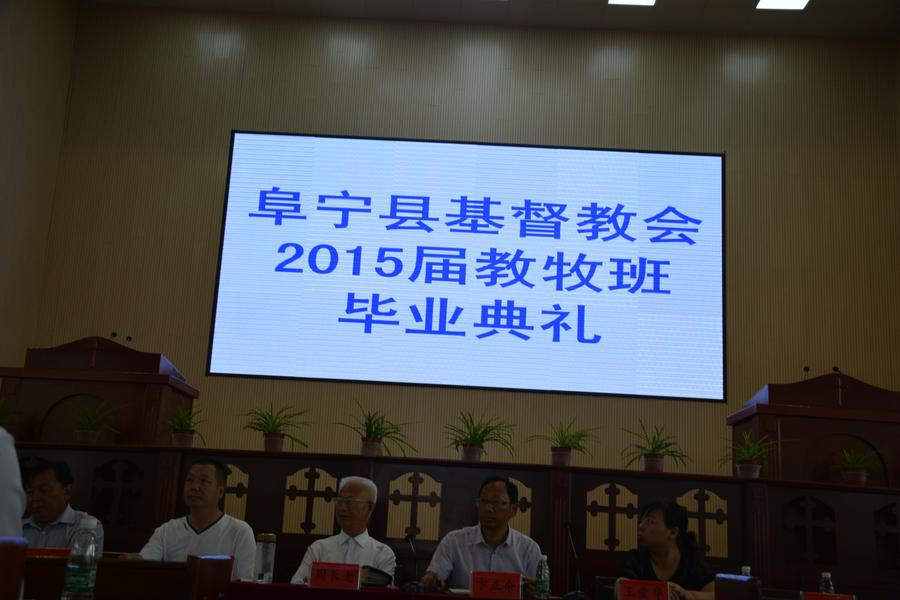 此次毕业典礼在盐城市基督教协会会长周立万长老祈祷声中开始。典礼上,阜宁县基督教培训中心主任李阿龙长老以《跟随主的腿踪,学习主的样式》为题教导即将毕业的同学:要学习耶稣谦卑顺服、甘心受苦、舍己救人,作众人的榜样。阜宁县县委统战部副部长卞正余、县民宗局副局长王爱华到会祝贺,说明了我县党委政府对宗教工作的重视,也更显示出县宗教局卞局长等各位领导对本期培训班各位学员的深切关怀。阜宁市基督教三自爱国运动委员会主席周立万长老也到场致词,他勉励即将奔赴禾场的学生:毕业不是结束,而是刚刚起步;不要贪图虚浮的荣耀;不要被权力地位辖制;不要在环境面前失去自己的本色,耶稣应是众人唯一的目标。