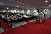 上午九点左右,赞美队到达了永生堂,雨虽然还在下,但是父老弟兄姊妹的热情不减,能容纳千人的永生堂也几乎坐满,这可是在农村的一个村庄的教堂。