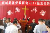 山西阳城县基督教两会于2017年7月16日上午,在本会城关教会举行了2017年度施洗礼拜,全县12个教会500余人参加了,早上起来,就匆匆忙忙来到教会参加今年的圣洗礼,各教会的负责人带着各点参加洗礼的弟兄姊们,也是提前赶来,接受洗礼。
