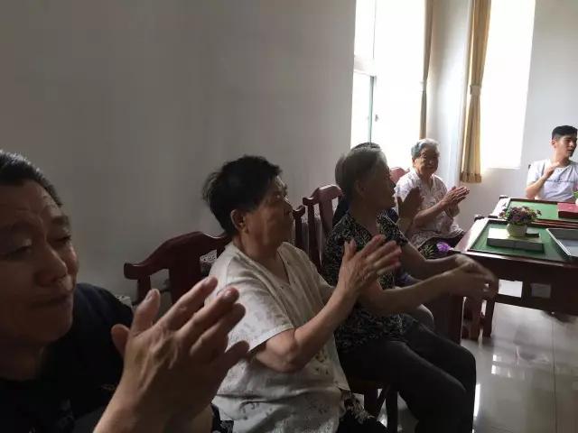 青年团契的年轻弟兄姊妹和老人们拉家常,聊天沟通,并为老人们献唱了《幸福拍手歌》《童年》《外婆的澎湖湾》经典歌曲,和《生命的河》《敬拜赞美迎来神同在》《最知心的朋友》等赞美诗,并在唱诗过程中带来耶稣的爱,为老人送上祝福。