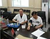 12点正,我们到达教会,欧阳弟兄早已挂出三十多个号,许多弟兄姊妹早早在等待,我们急忙设好内科、妇科、口腔科、针灸科之后,我和兰医生、还有赶来支援的郭永康弟兄一起,给大家量血压、测血糖和挂号,分别输送患者到各科室诊疗,一时挂号台挤得水泄不通,几位医生便有条不紊地服务众人。