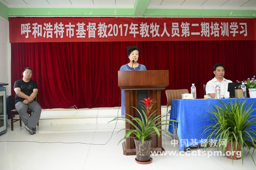 呼和浩特市基督教三自爱国运动委员会常务副主席、呼和浩特市基督教协会常务副会长兼秘书长高友洪牧师在开班仪式的讲话中进行了三方面的劝勉:一要认真学习。树立终身学习理念,以学习消除误解,用学习来代替事非;二要促进沟通。通过学习,相互交流,取长补短,互相启发,教学相长,增进共识,加强团契,彼此扶持,互相鼓励,共同进步;三要努力服事。学习为了学以致用,让我们以身证道,努力服事,为教会排忧解难,服务这个伟大时代,为主殷勤服事,牧养和带领众弟兄姊妹进到青草地、溪水旁。