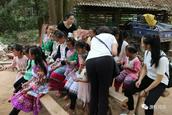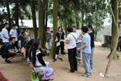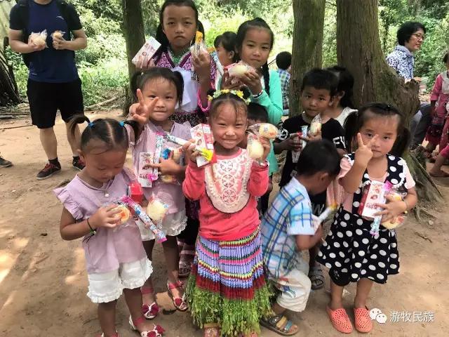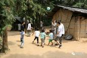 礼拜后,大家挪到小树林里一起敬拜,福音堂同工给女孩子们发手工材料,教大家穿五色珠,男孩们则一起游戏,大家还给孩子们带来牛奶和面包,领到礼物的孩子们真开心。