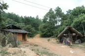 到达目的地,映入眼帘的画面如同回到了解放前:低矮的茅草屋,不是亲眼所见真不敢相信,干打垒的土屋,随便打一个棚就是一家人居住的所在,土屋随处可见,有些已经倒塌。苗族同胞的土柸房和当地村民的楼房形成了强烈对比。