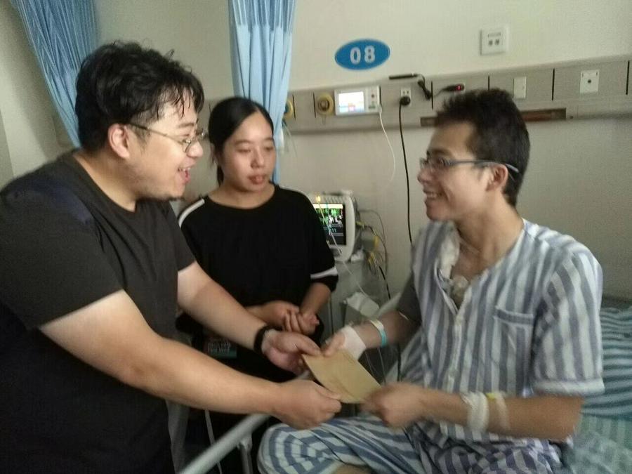 祷告结束后,张锴牧师代表江苏神学院,给虞捷弟兄递过去5万元慰问金的转账支票,希望他能够早日康复,并表示会继续关注和代祷。江苏神学院院长张克运牧师正出差,从瑞士发来了对于虞弟兄及其家人的慰问信息。江苏神学院副院长张克全牧师也让其余同工代为转达自己的关心,因临时有事,不能亲自前去医院探望。