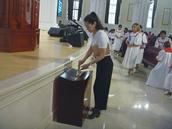 在钱丽老师的带领下,弟兄姐妹争前恐后排起长队有秩序的进行募捐,场面感动,不到十分钟时间就募捐到58100元整。耶稣说:“作在我一个最小的弟兄身上,就是作在我的身上了。”