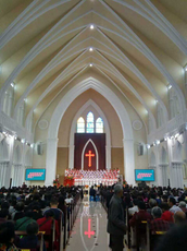 1994年底信教者发展到600多人,原有教堂容纳不下,于1995年初,经市委统战部、宗教局和市基督教三自爱国会的批准,在新官西路移地建造教堂,建筑面积约1200多平方。