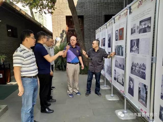 2017年9月4日上午,杭州市基督教两会班子成员在会长张耀法牧师的带领与讲解下,参观思澄堂建堂90周年“杭州基督教历史图片和文物展”。大家通过一张张泛黄的珍贵的历史图片及一件件收藏的杭州基督教历史文物,对杭州基督教历史发展有了进一步的了解和认识。