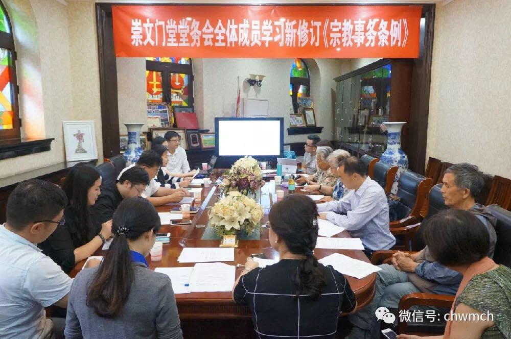 2017年9月15日,北京崇文门堂组织全体堂务会成员及教牧同工学习新修订的《宗教事务条例》及“五大宗教领袖齐聚醇亲王府集体发声”之高峰、王作安讲话精神。
